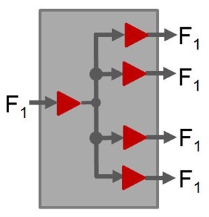 圖 1. 使用扇出緩沖器創(chuàng)建大量單輸入頻率副本