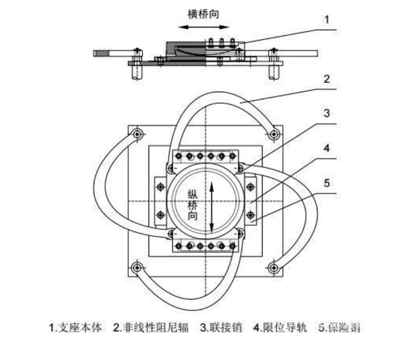 在罕遇地震狀態(tài)下:阻尼輻發(fā)生較大的位移,并進(jìn)入強(qiáng)化階段(未斷裂),在鎖定有限位移、降低地震反應(yīng)的同時(shí),可有效防止上部落梁,確保震后大橋交通順暢。
