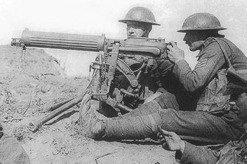 在一戰(zhàn)爆發(fā)時(shí),只有德國真正認(rèn)識到機(jī)槍重要性。當(dāng)時(shí),德國陸軍裝備的馬克沁機(jī)槍超過12500挺。索姆河戰(zhàn)役是機(jī)槍史上最令人驚心動魂的戰(zhàn)例。1916年7月,德國人以平均每百米一挺馬克沁M(jìn)G08機(jī)槍的火力密度,向40公里進(jìn)攻正面上的14個(gè)英國師瘋狂掃射。一天之內(nèi),6萬名英軍士兵傷亡。到11月18日戰(zhàn)役結(jié)束時(shí),這141天時(shí)間里英法聯(lián)軍陣亡61.5萬人,德軍陣亡65萬人,大多數(shù)人都倒在了馬克沁機(jī)槍的火舌下。歐洲整整一代人喪命于機(jī)關(guān)槍下。