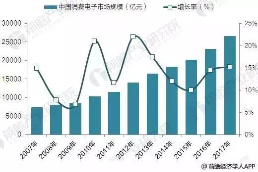 3:2007-2017年中國消費電子市場規(guī)模(單位:億元)