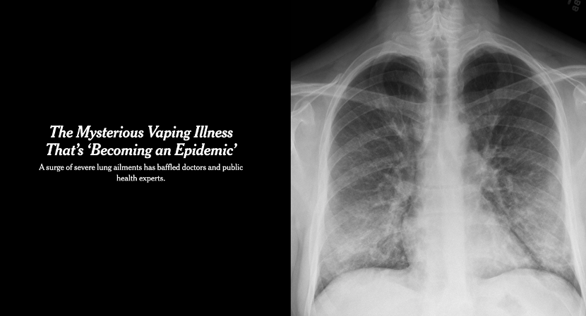 據(jù)《紐約時報》去年8月報道,“電子煙疾病”患者通常會出現(xiàn)嚴(yán)重的呼吸短促、胸痛、嘔吐、發(fā)燒和疲勞等癥狀,有些患者需要在重癥監(jiān)護(hù)室配合呼吸機(jī)治療。報道稱,暴發(fā)的電子煙肺病疫情正在“成為一種流行病”,困擾著醫(yī)生和公共衛(wèi)生專家。