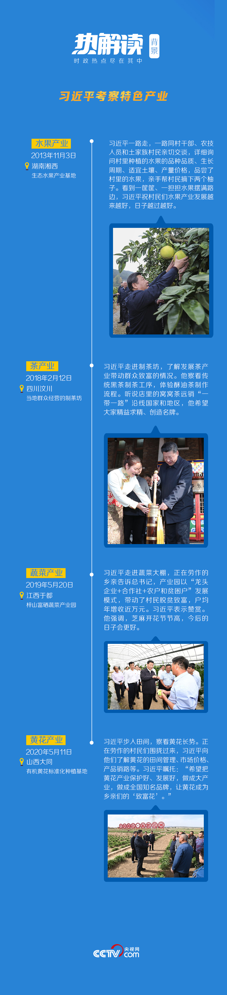 黨的十八大以來(lái),習(xí)近平總書(shū)記在多次地方考察中,都十分關(guān)注當(dāng)?shù)靥厣a(chǎn)業(yè)的發(fā)展情況。